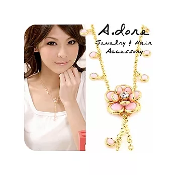 【A.dore】山茶花水晶垂墜Y字項鍊(金邊粉紅色)