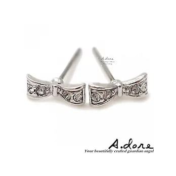【A.dore】芭莉絲小蝴蝶結˙水晶鑽石耳環-星河銀